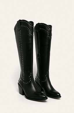 Kontroverzní trend z 90. let nás nechce opustit, to je velmi dobře, protože vypadá zajímavě. V létě nás potěšily sandálky se čtvercovou špičkou, nyní by měl být váš botník naplněn kozačkami v charakteristickém tvaru. Zmíněnou špičku lze kombinovat s hladkou podrážkou nebo s ozdobným podpatkem. Preferovaná barva? Minimalistické dámy budou určitě milovat černou, ačkoli v krémové nebo světle hnědé barvě vypadají boty také velmi lákavě, zejména s džínami s prodlouženým střihem.