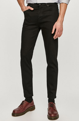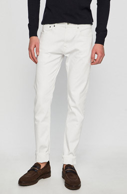 Pokud máte štíhlou siluetu, namísto úzkých těsných džínů si zvolte spíše slim fit. Kalhoty tohoto typu jsou úzké – stále obepínají stehna, ale u lýtek jsou o něco širší než výše uvedený model. Každý štíhlý muž v nich bude vypadat dobře.
