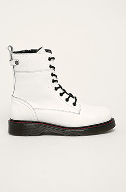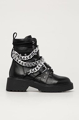 Abychom mohly zakomponovat do outfitů doplňky ve stylu army, nemusíme nutně vstoupit do armády. Vojenské boty – těžké šněrovací s vyšším svrškem jsou nezpochybnitelným hitem této sezóny. V 90. letech je Madonna a Drew Barrymore milovaly, dnes se opět objevují na molech nejznámějších návrhářů od Diora až po Valentina. Masivní, černé, vypadají skvěle s podkolenkami nebo punčochami. Kromě vizuální přitažlivosti jsou i praktické – překážkou vám nebudou žádné louže, závěje ani blátivé ulice.